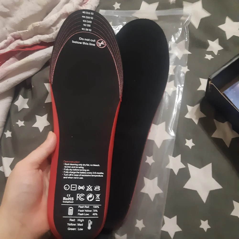 Швидкий нагрів: Устілки розігріваються до робочої температури всього за 3 хвилини. Хоча температура може здаватися меншою на дотик, коли устілки знаходяться у взутті, тепло конвекційно розподіляється, що дозволяє вашим ногам відчувати більше тепла.